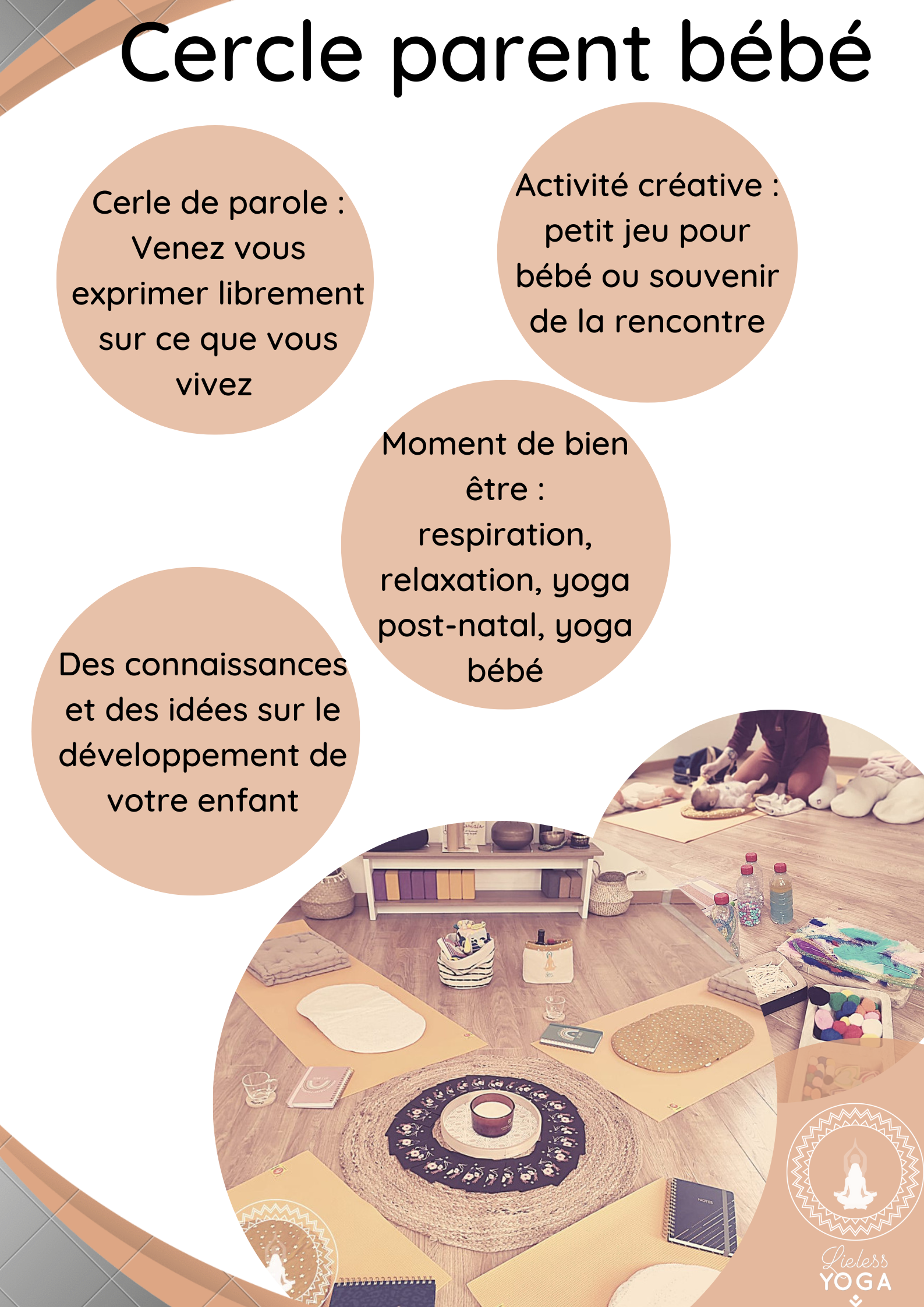 Au-delà des cours de pré et post natal , j'ai souhaité proposer un accompagnement global autour de l'entrée dans la parentalité en me formant d'une part au yoga bébé puis en tant que facilitatrice de cercles mamans bébés.