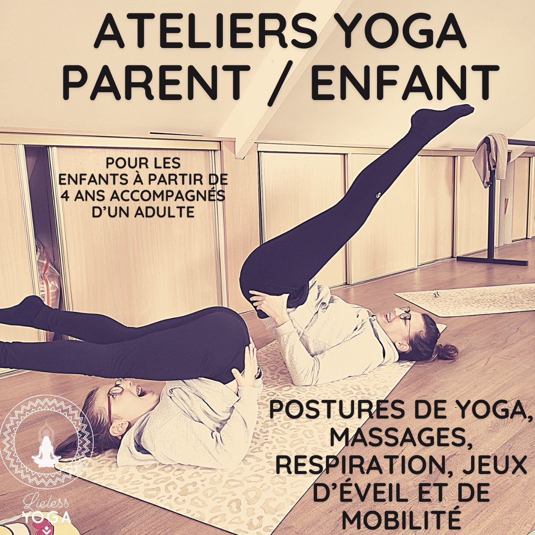 Les ateliers de yoga parents / enfants sont accessibles aux enfants à partir de 4 ans, accompagnés d'un adulte (parents, grands-parents...). Le séances se composent d'un échauffement, d'une pratique posturale de yoga, de massages à deux et de jeux d'éveil ou de mobilité.